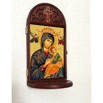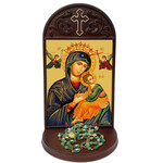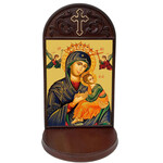 SH23 Perpetual Help Gold Foil Icon Wooden Shrine - With 3 Inch Deep Shelf to Place Rosary, Candle, Prayer Request or Holy Water Bottle Holder 8 1/2 Inch Tall