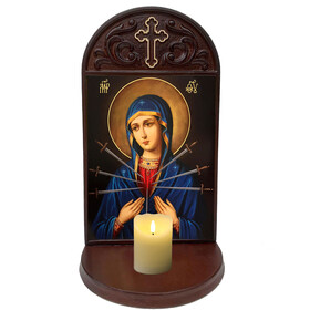 Includes 3 inch deep shelf, to place rosary, candle, prayer request or holy water bottle -