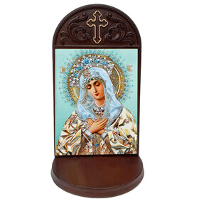 SH43 Extreme Humility Icon Wooden Shrine With Rosary, Candle and Holy Water Bottle Holder 8.4 inch tall