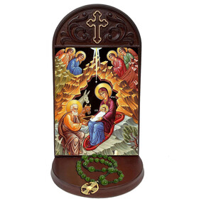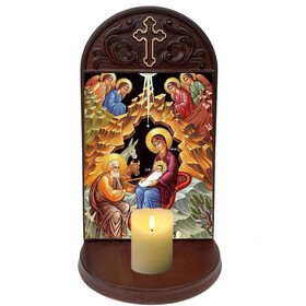 Includes 3 inch deep shelf, to place rosary, candle, prayer request or holy water bottle -