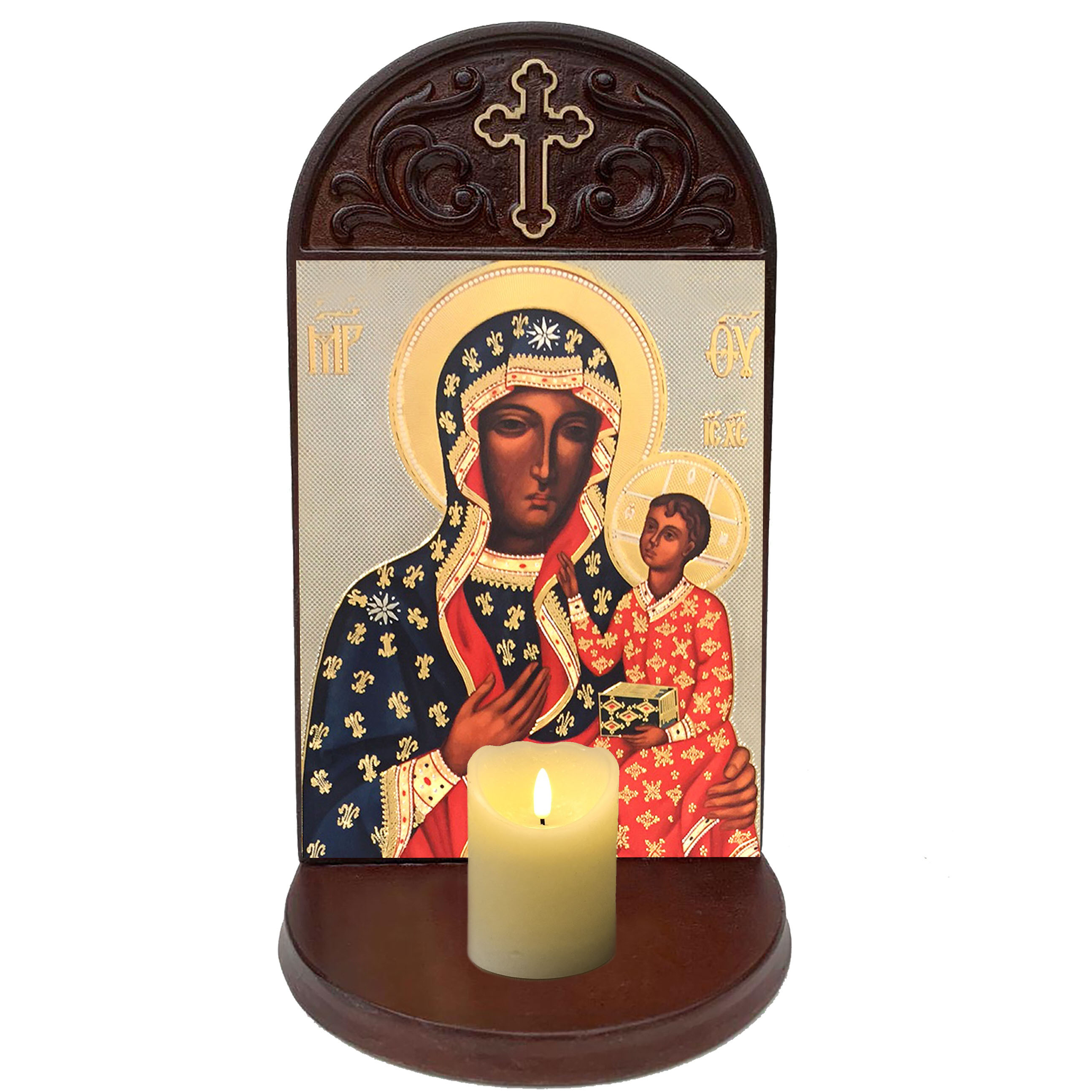 Includes 3 inch deep shelf, to place rosary, candle, prayer request or holy water bottle -