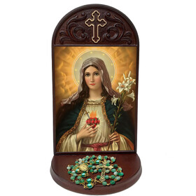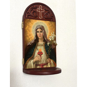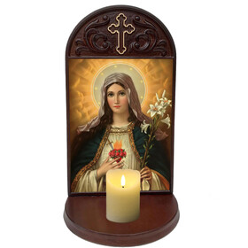 Includes 3 inch deep shelf, to place rosary, candle, prayer request or holy water bottle -